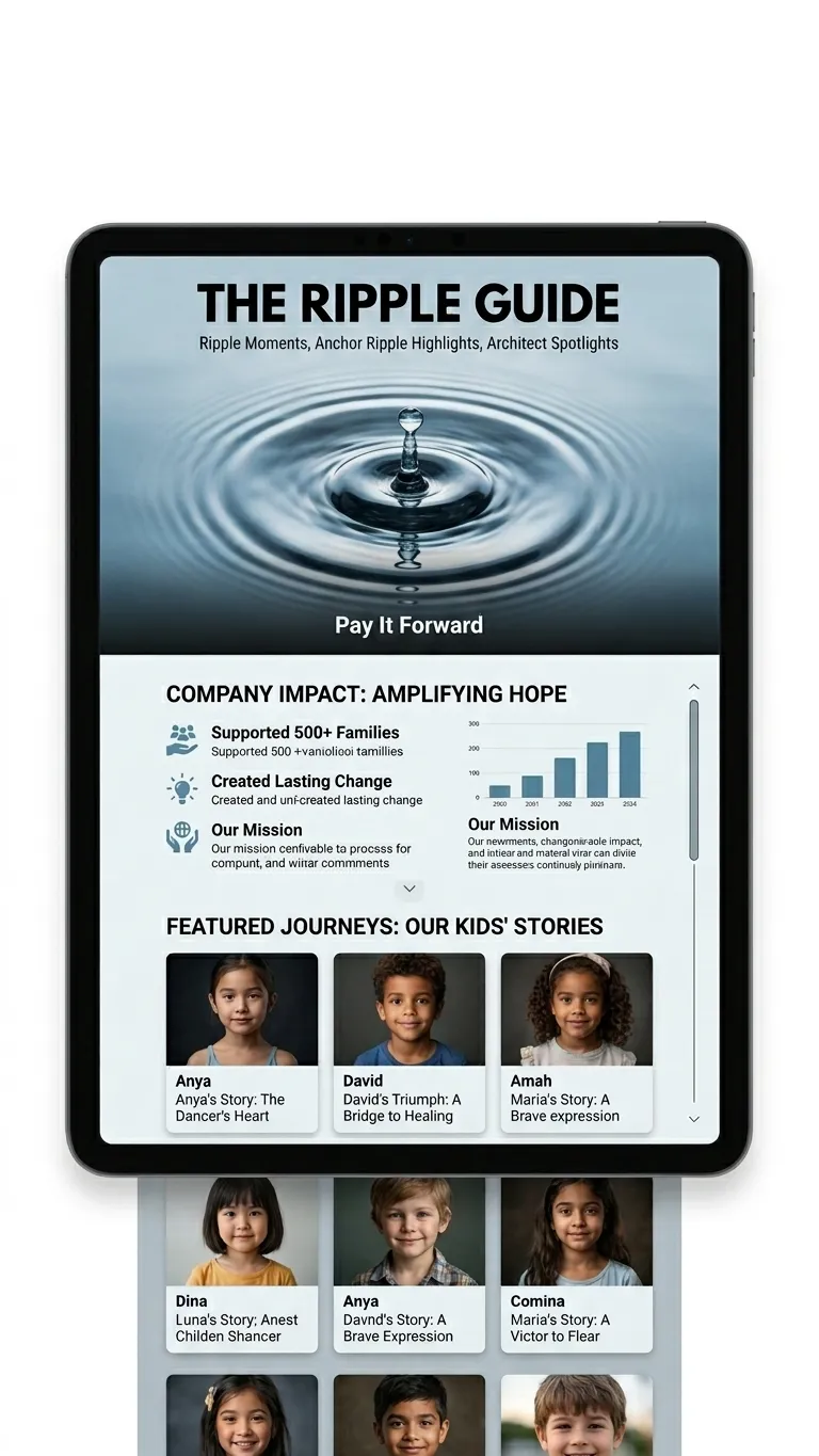 The Ripple Guide — a living digital publication documenting Ripple Moments, member stories, and the ripple effect in action -showing how small actions create real relief.